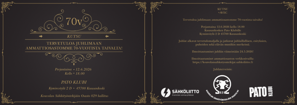 Tervetuloa juhlimaan ammattiosastomme 70-vuotista taivalta!